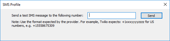 - Test - Allows you to send a test SMS message using the selected profile