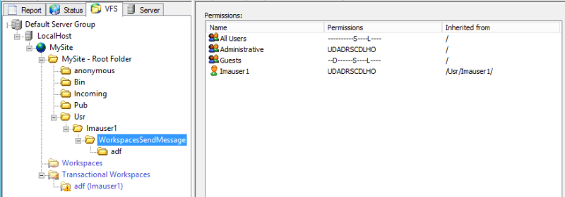 When you send a file in the Web Transfer Client, a WorkspacesSendMessage folder is created under the sending user's home folder in the Virtual File System (VFS). Subfolders in the WorkspacesSendMessage folder are named for the Subject line of the message.