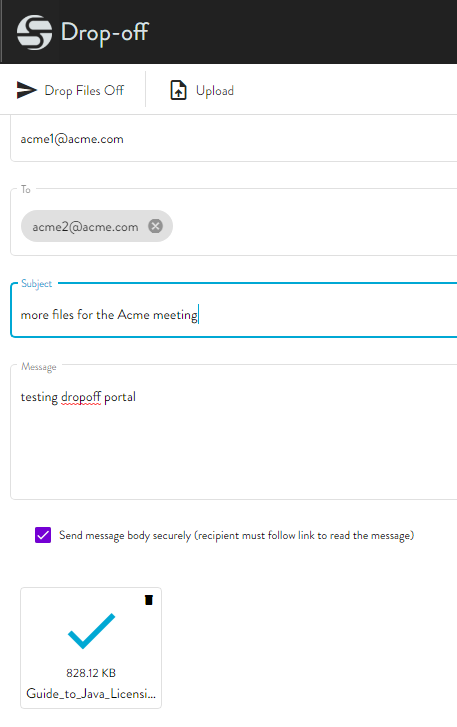 To send a file using the Drop-Off page