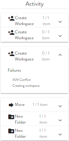 Messages and prompts appear for a variety of scenarios in the Activity pane. Click the down arrow next to the item for more information.