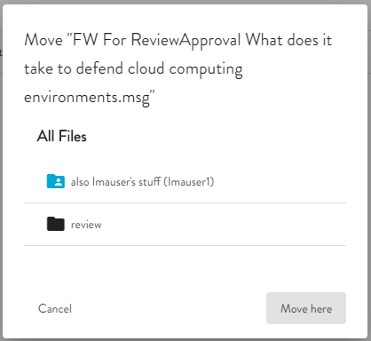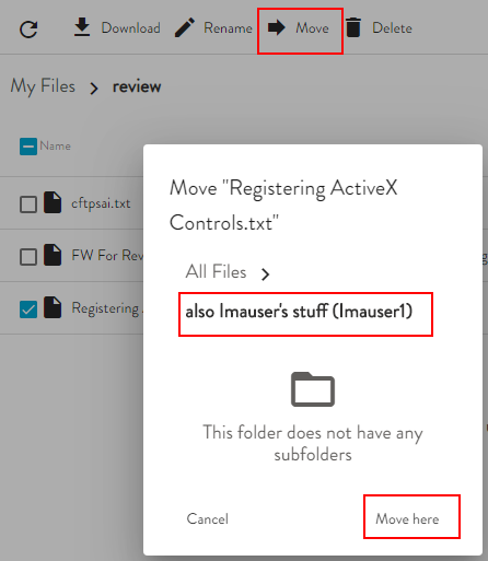 Select the check boxes of one or more files that you want to move, then click the Move icon. The Move dialog box appears.