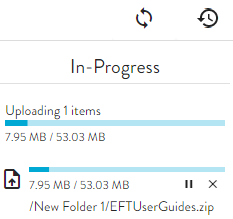 to see files that are uploading or the History icon
