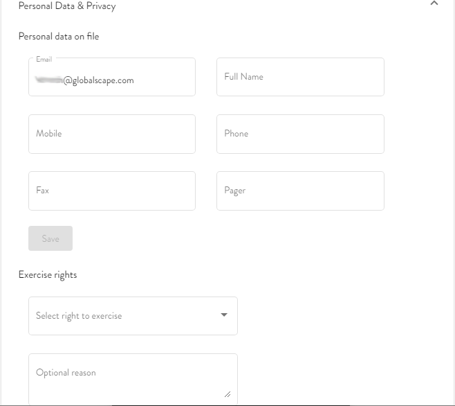 If nothing is displayed when you expand Personal Data & Privacy, the EFT administrator has not configured that in the administration interface.