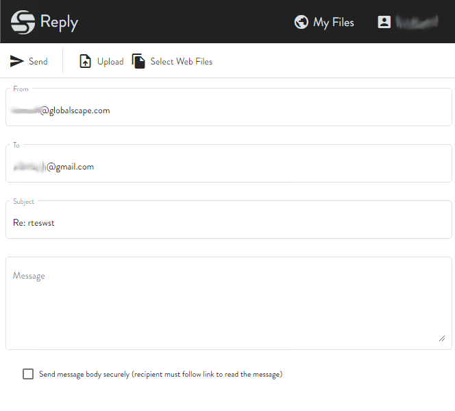If the reply is in response to a request for files, the Send message body securely check box appears.