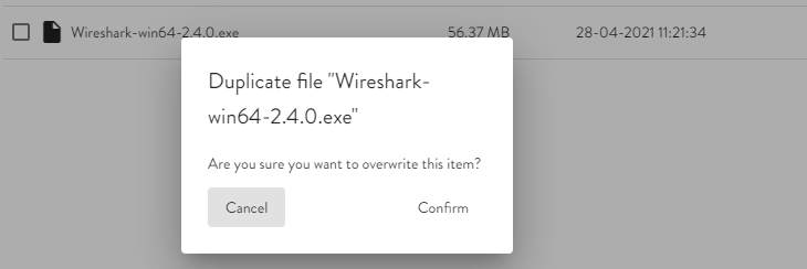 When the file is transferred, if there is a file with a duplicate name already in your folder on the server, you are presented with a prompt asking if you want to overwrite the existing.