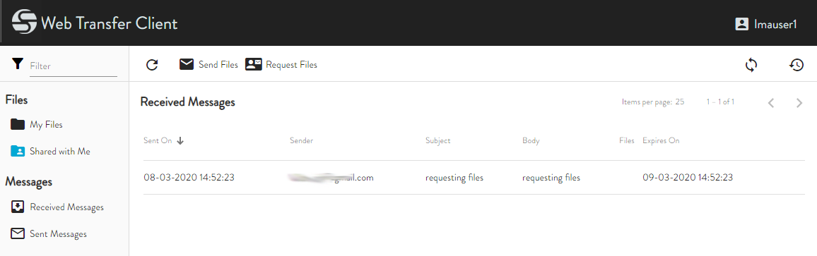 Workspaces users can view a list of the messages they have received, and their attachments. Once the items expire (if the EFT or user have set an expiration), those items are no longer viewable.