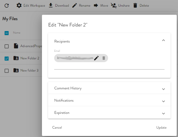 You can add comments to a shared Workspace. You can also view the comments that have been added. All participants in this shared folder can read the comments.
