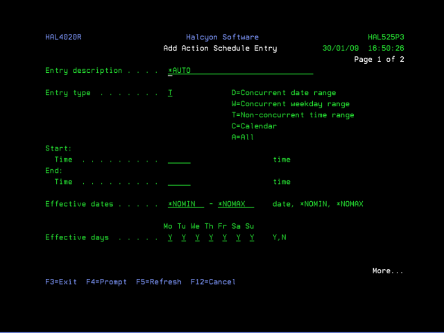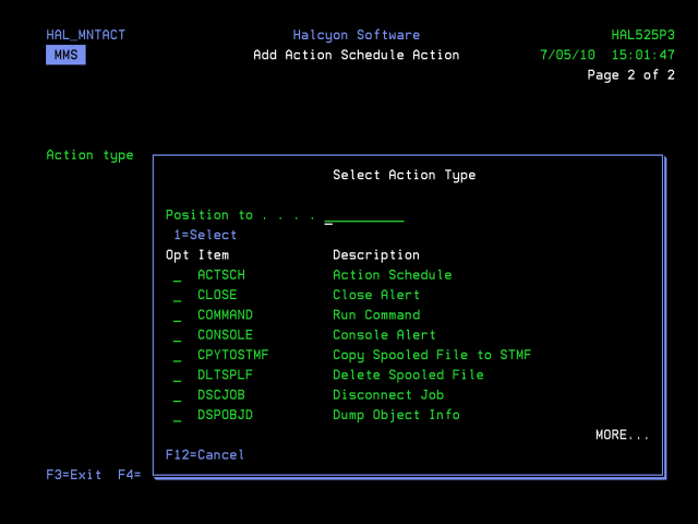 Use <Page Down> to open the Add Action Schedule Action display.