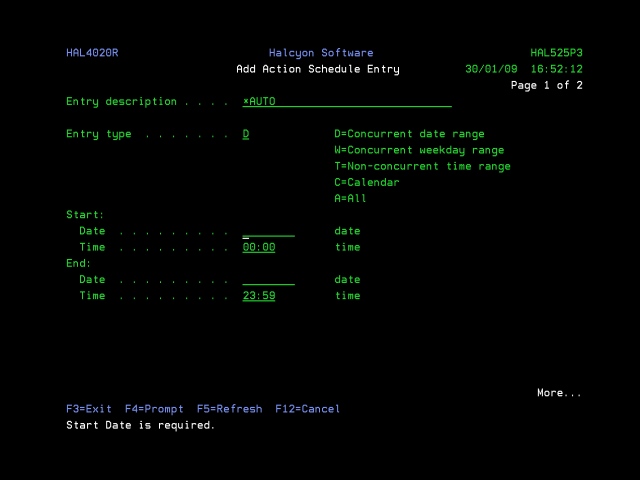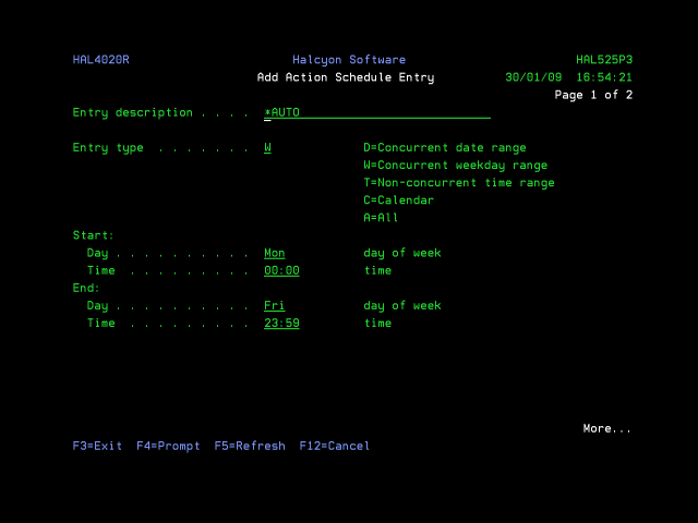 Press F6=Add to add a new entry to this action schedule and open the Add Action Schedule Entry display.