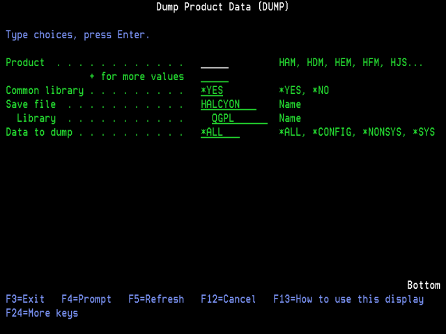 Option 30=Dump Product Data on the Utilities menu is used to save product data to a save file so it can then be sent to Halcyon Technical Support who can use the data to carry out an in depth investigation to assist in any problem resolution.