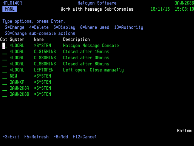 Use F6=Add to open the Add Message Sub-Console display from where a new Message sub-console can be created. See ‘Adding a Message Sub-Console’ (below) for more information.