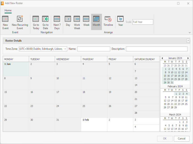 Click OK to create the new event for the Roster.