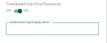 Enter the name to be shown in the authenticator app to identify Fortra Application Hub. This field is only used if Time-Based One-Time passwords is toggled On.