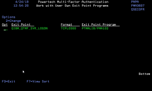 - Once the Powertech Multi-Factor Authentication program has been called, it will call the program that was formerly registered against the exit point.