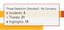 Hover the mouse pointer over any of the displayed bars to display a tip window showing the exact number of incidents, threats and highlights represented.