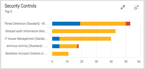 - The Security Controls panel shows, by default, the Top 5 security controls currently facing your organization.