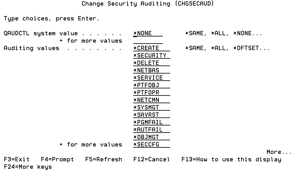 The CHGSECAUD command creates the secured journal QAUDJRN, if it doesn't already exist, and sets the system values QAUDCTL and QAUDLVL to a set of values that provide a basic level of system auditing. This command also creates and attaches the journal receiver QGPL/AUDRCV0001 to the QAUDJRN journal.