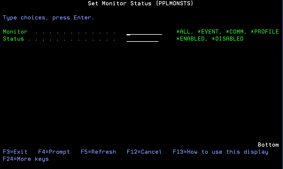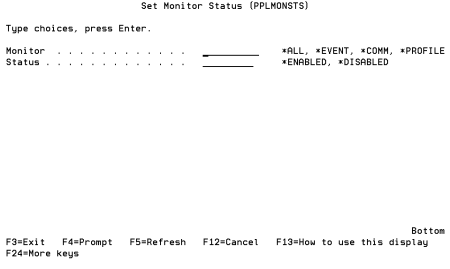 The Set Monitor Status (PPLMONSTS) command allows monitors and other operational resources to be enabled or disabled. When disabled, the monitor will not be allowed to start until it is again enabled.