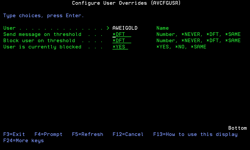 Configure User Overrides (AVCFGUSR)