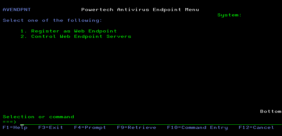 The AVREGWEB command is used to register an IBM i system as a web endpoint. This allows users to access the system's antivirus services through the web interface. See the Register as Web Endpoint (AVREGWEB) command for more information.