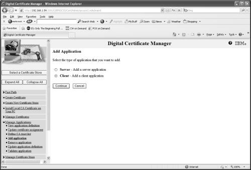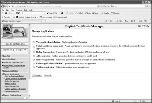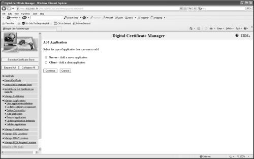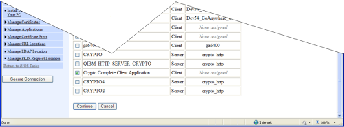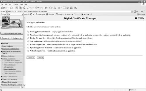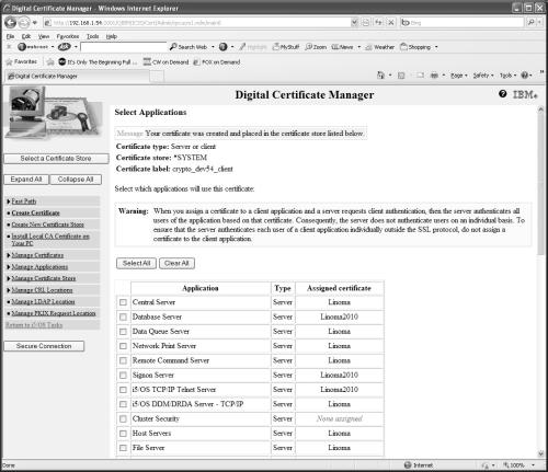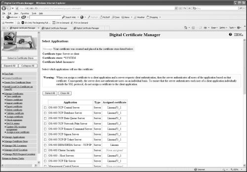- Once a certificate is created, the Digital Certificate Manager will display a list to allow you to select the applications to be associated with it.