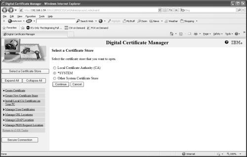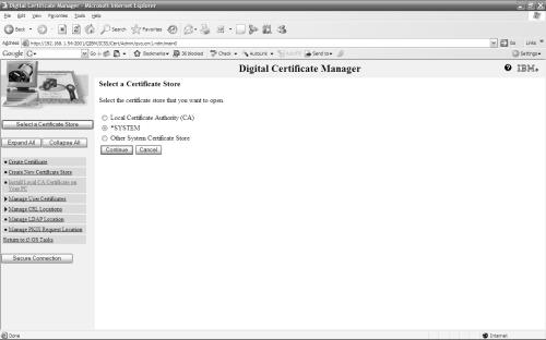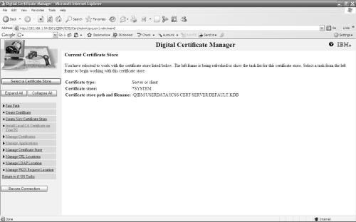 The IBM i Administration web server instance must be running in order to work with the Digital Certificate Manager.