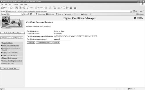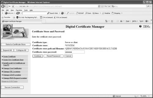- Enter the *SYSTEM Certificate Store password and click Continue. If you do not know the password check with your system administrator.