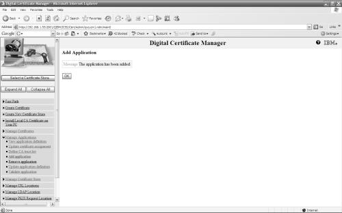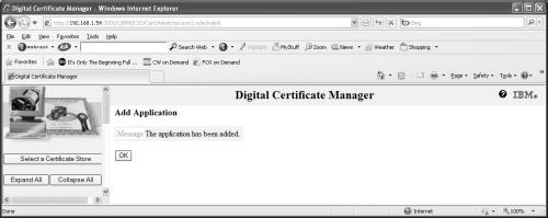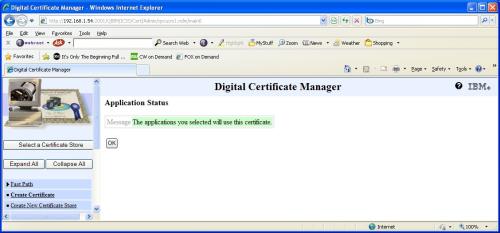 - When the certificate has been completed, Digital Certificate Manager provides an opportunity to select an application to associate the certificate to.