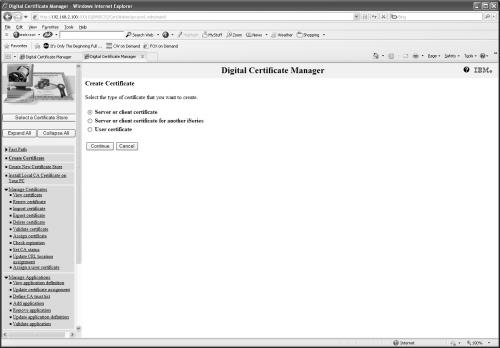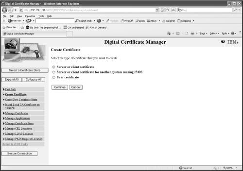 - To create a server certificate, click on the Create Certificate link on the left side of the screen.