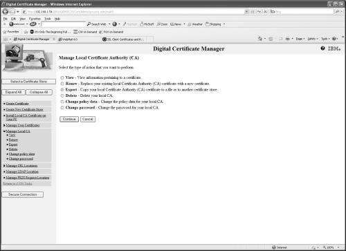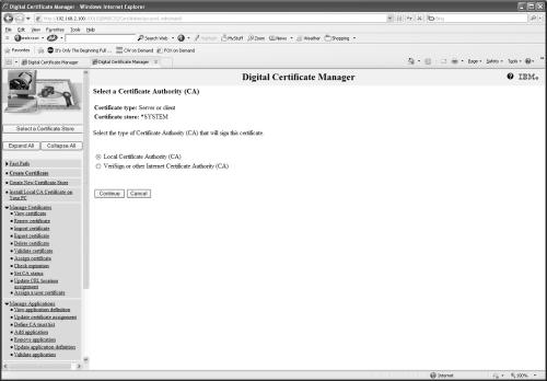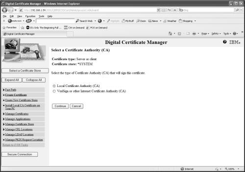 - Select the Local Certificate Authority (CA) radio button, then click Continue.