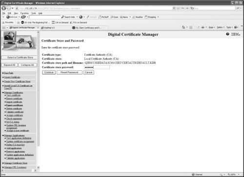 - Enter the Certificate Store password and click Continue. If you do not know the password check with your system administrator.