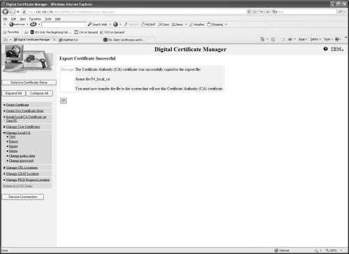 - Export of the client IBM i Local Certificate Authority (CA) successful!