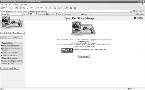 The IBM Digital Certificate Manager (DCM) is a web-based application that is accessible from the Administration Server on System i. You can start the Administration Server from the server's function in iSeries Navigator or you can enter the following command: