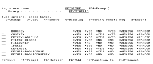 The Work with Symmetric Keys (WRKSYMKEY) command allows authorized users to work with the Symmetric Keys contained in a Key Store.